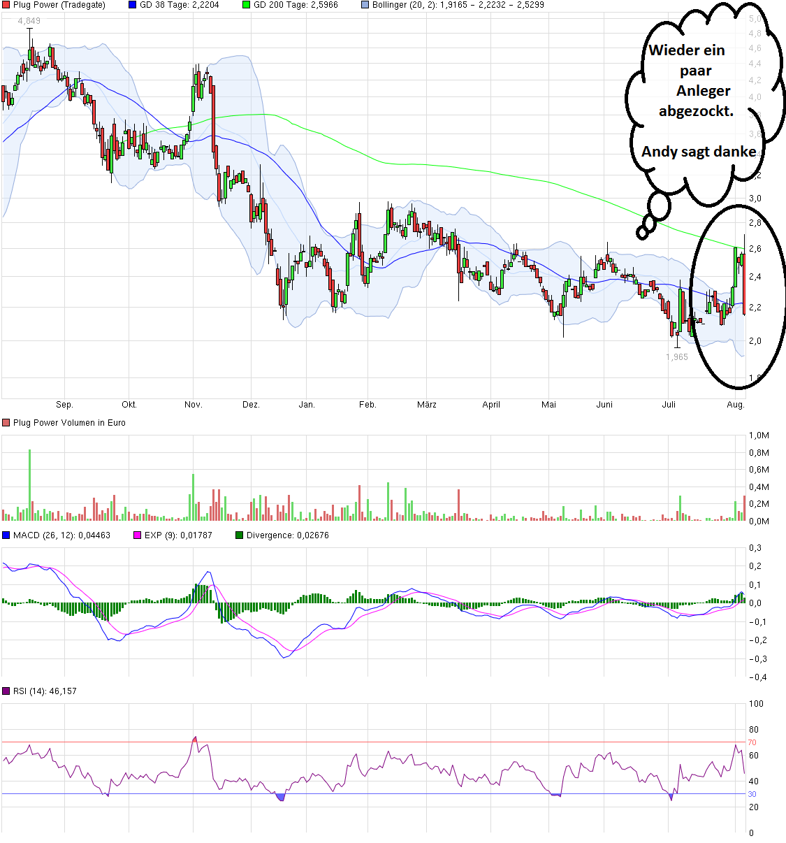 Plug power verbrennt eine menge geld, weil sie viel in forschung stecken müssen. Es muss u.a. ein ersatz für platin gefunden werden. Da gibt es schon interessante ansätze, z.B. bio-katalysatoren. Die sind viel günstiger, werden aber von sauerstoff zerstört. Jetzt testet man, ob hydrogele einen schutz bieten können, dass sauerstoff nicht zu den enzymen gelangen kann. Schaut vielversprechend aus, ist aber noch grundlagenforschung(!). Andere ansätze sind auch denkbar, einen durchbruch wird man aber nicht bis zu den nächsten q-zahlen erwarten können..... Solange dies nicht der fall ist, bleibe ich bei der fotovoltaik. Komme aber gerne wieder zurück, da die bz-technik schon faszinierend ist.