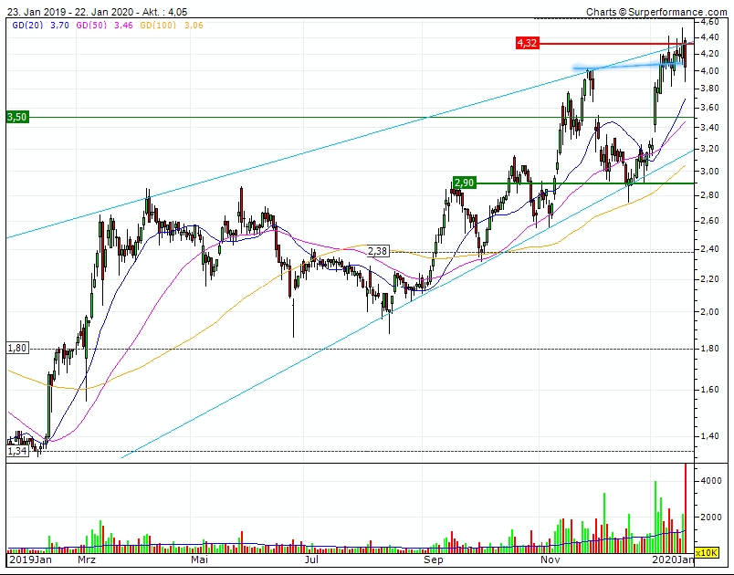 Stand jetzt, sie steht. Die 3,90$ wurden Intraday schon einmal getestet.