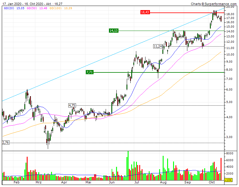 Neben meiner Langfristposition hatte ich bis vor kurzem noch eine sehr viel kleinere Zockerposition. Die hab ich vor einigen Tagen bei 16,60 EUR aufgelöst. Bei ca. 12,50 EUR würde ich die wohl wieder aufbauen. Früher nicht. :-)