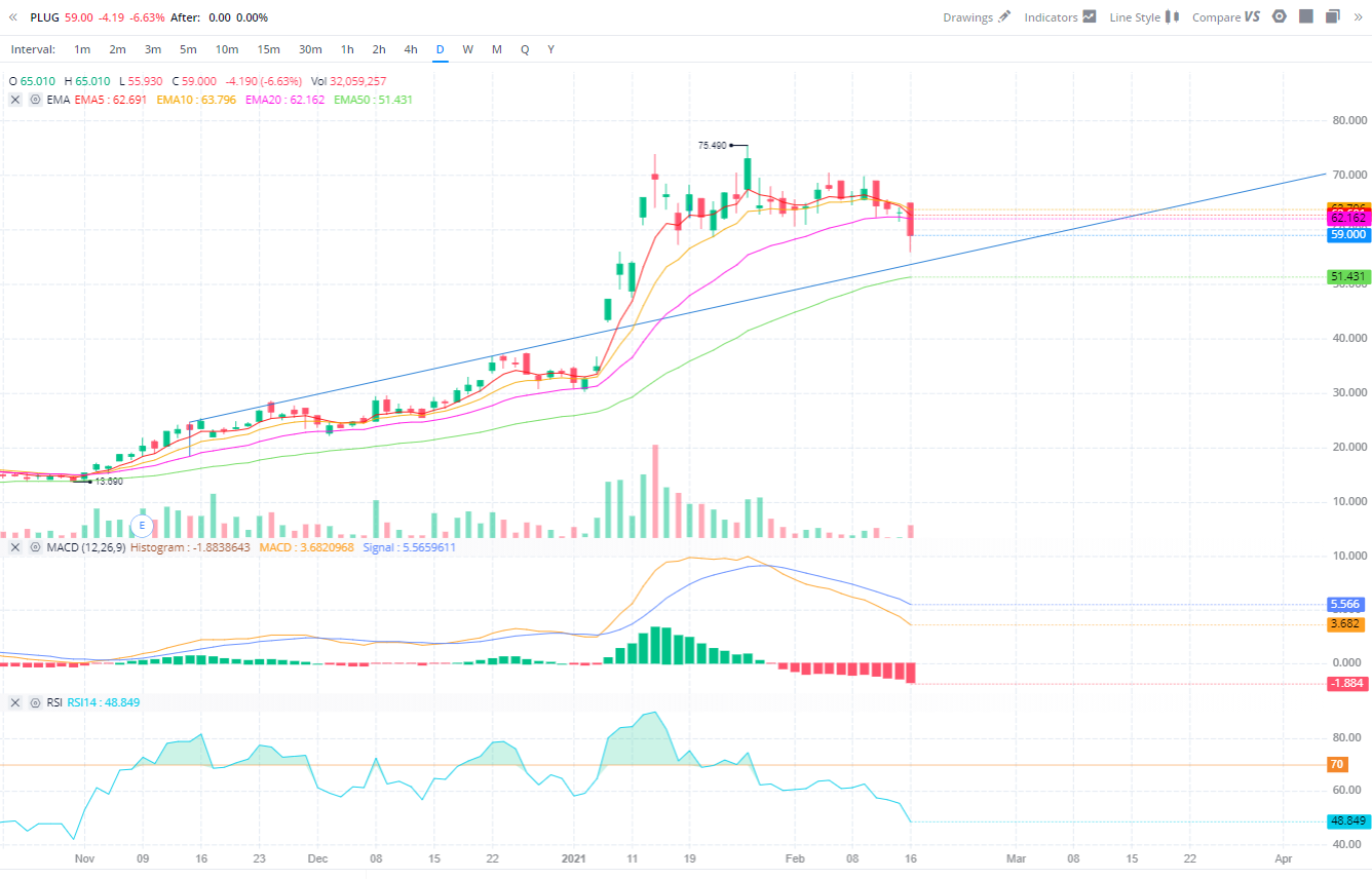 Nichts desto trotz muss man sich in der heutigen Zeit immer vor Augen halten woher der Kurs kommt und wo wir gerade stehen. Mir fehlt derzeit die Phantasie, um den Bullrun ohne Bären fortzusetzen. Deswegen die kurze Konsolidierung, bei Bruch der EMA 50 bei derzeit 51,43 Dollar wäre frühestens an eine Trendumkehr zu denken.