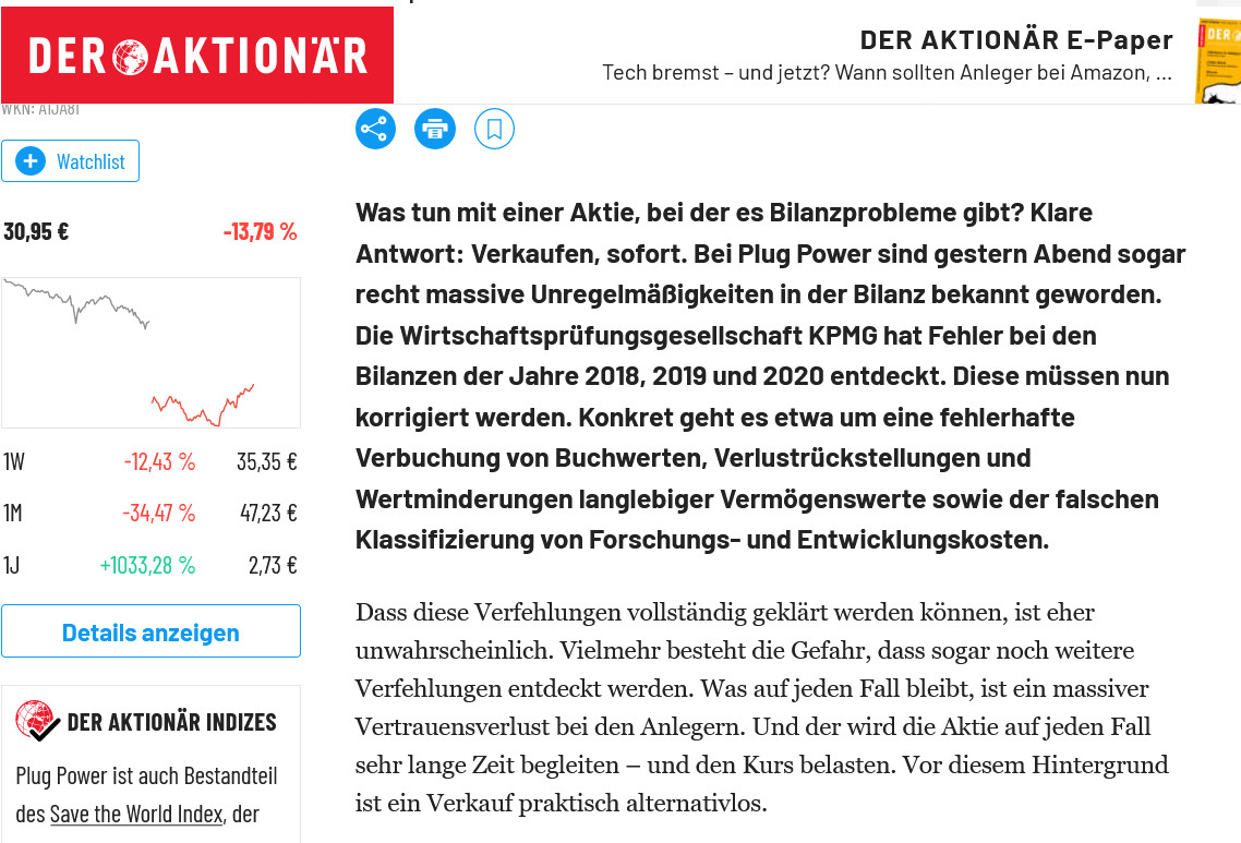 Was soll diese Scheindiskussion bei Plug Power?