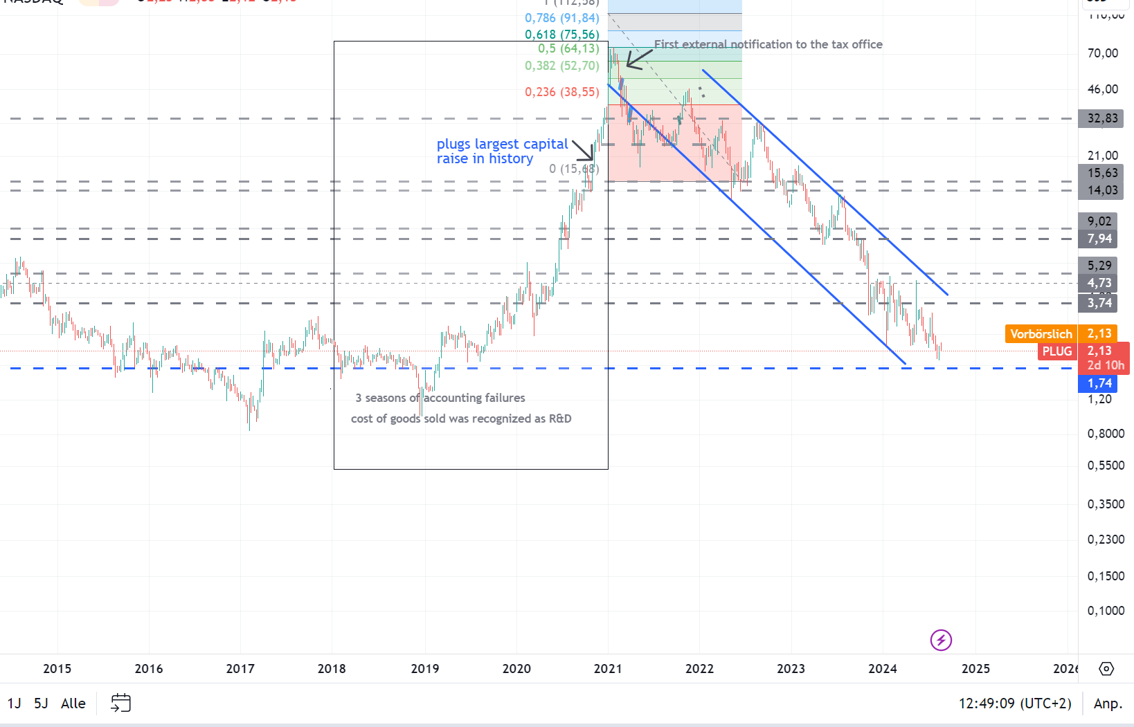 Als 2021 das mit den Bilanzierungsfehlern öffentlich auffiel, haben sich noch andere drangesetzt und sind neben den ganzen "adjusted" etc. zukünftige Verbindlichkeiten durchgegangen. Was natürlich dadurch erschwert wird, dass Plug selbst jeden Furz als irgend einen Erfolg darstellt, so dass man schnell die Übersicht verliert, und somit schnell übersieht, das in der Zukunft eingegangene Kontrakte, JVs, Übernahmen usw. nur zum Teil oder gar nicht aktiviert sind oder gar bezahlt sind.