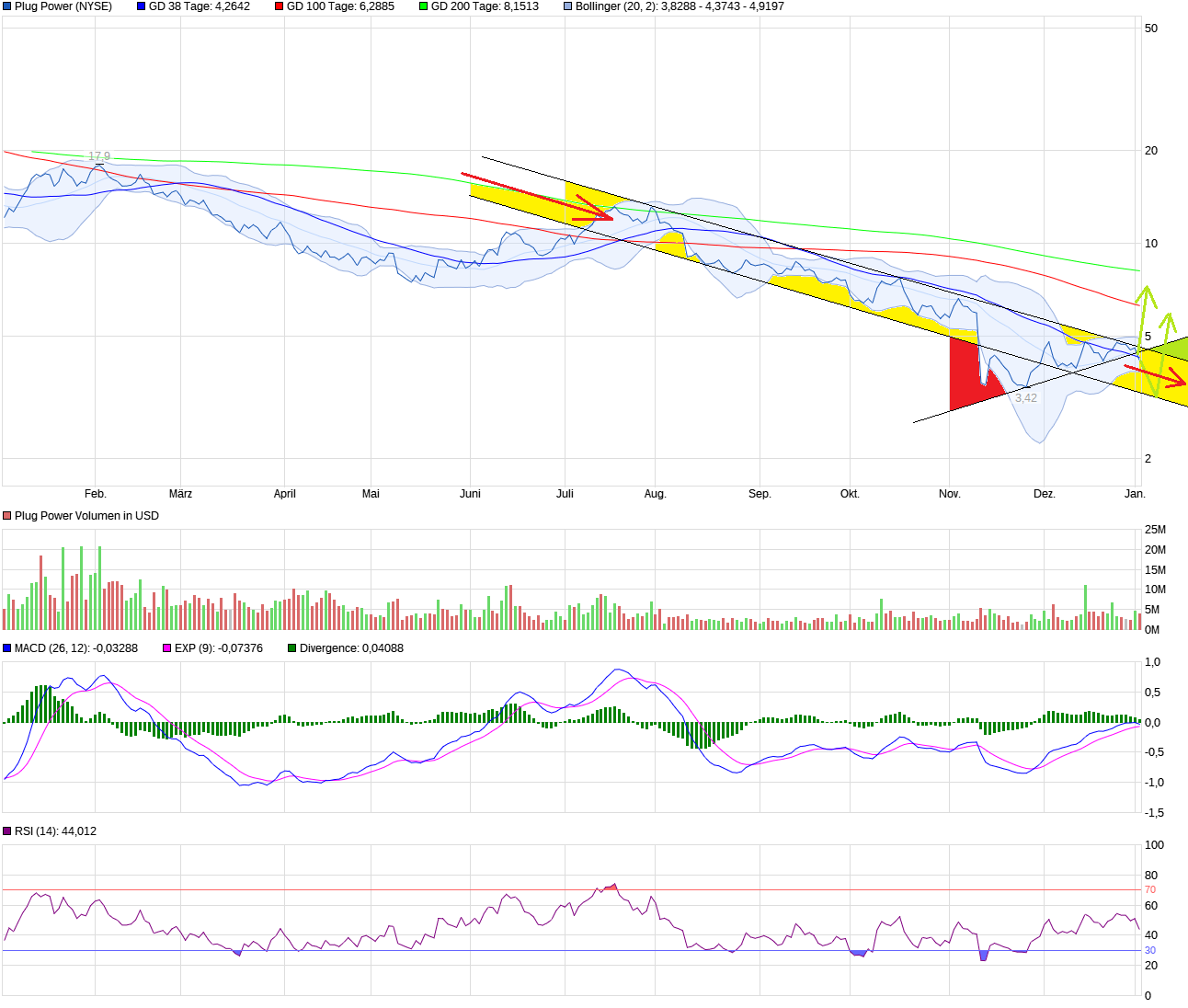 und auf der anderen Seite die Umweltziele resp. die Mia-US-$ Staatssubventionen, wovon insbesonder Produzenten von "grünem Wasserstoff" profitieren, also Plug Power.