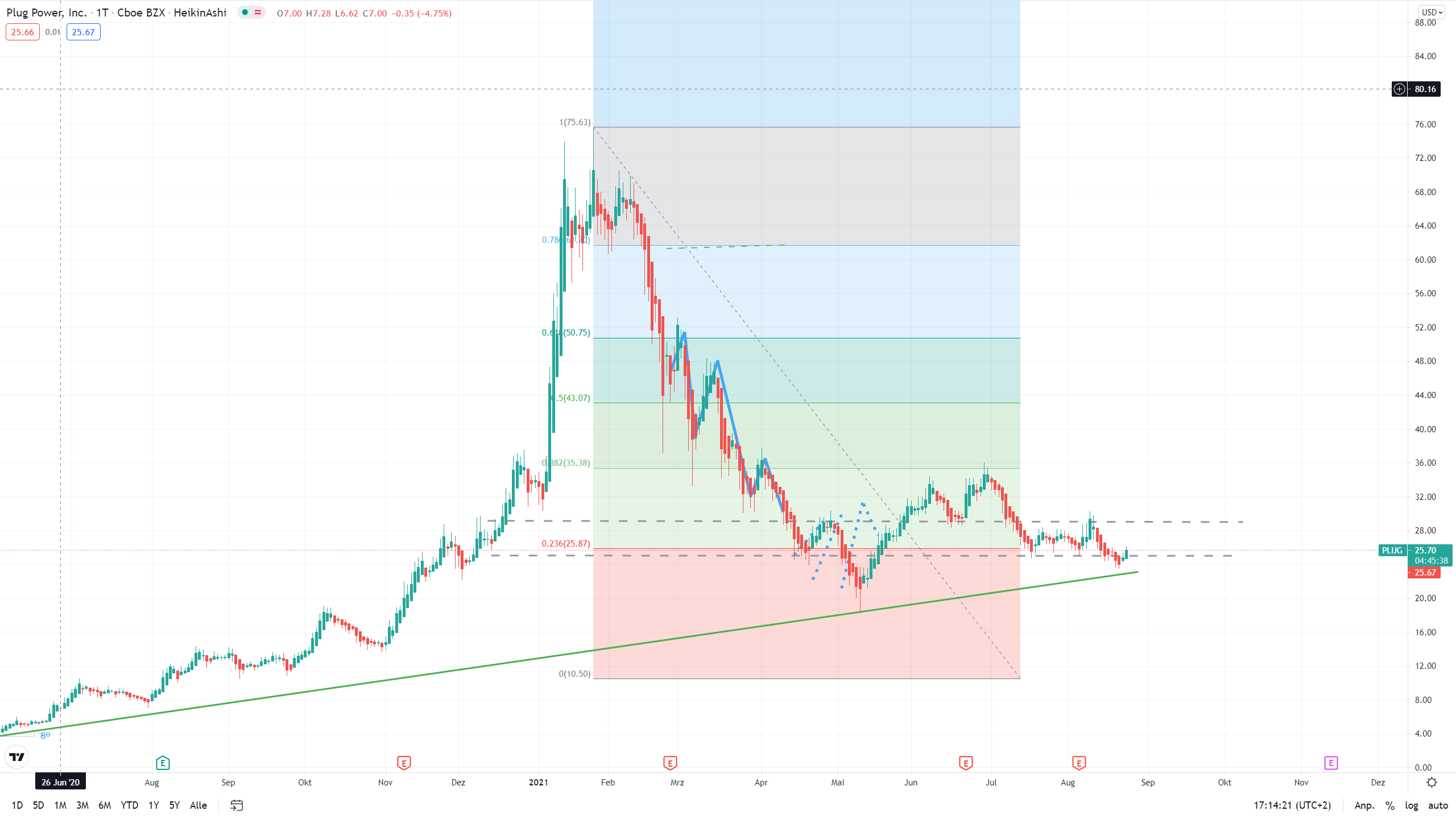 von $ 22 konnte gehalten werden und auch die $ 25 haben heute erneut gehalten,