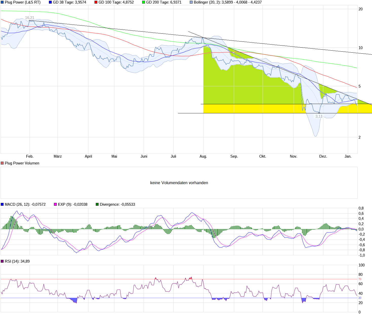 Die Plug Power Aktie wird aktuell mit einem Minus von -8,54 % und einem Kurs von 3,695USD gehandelt.