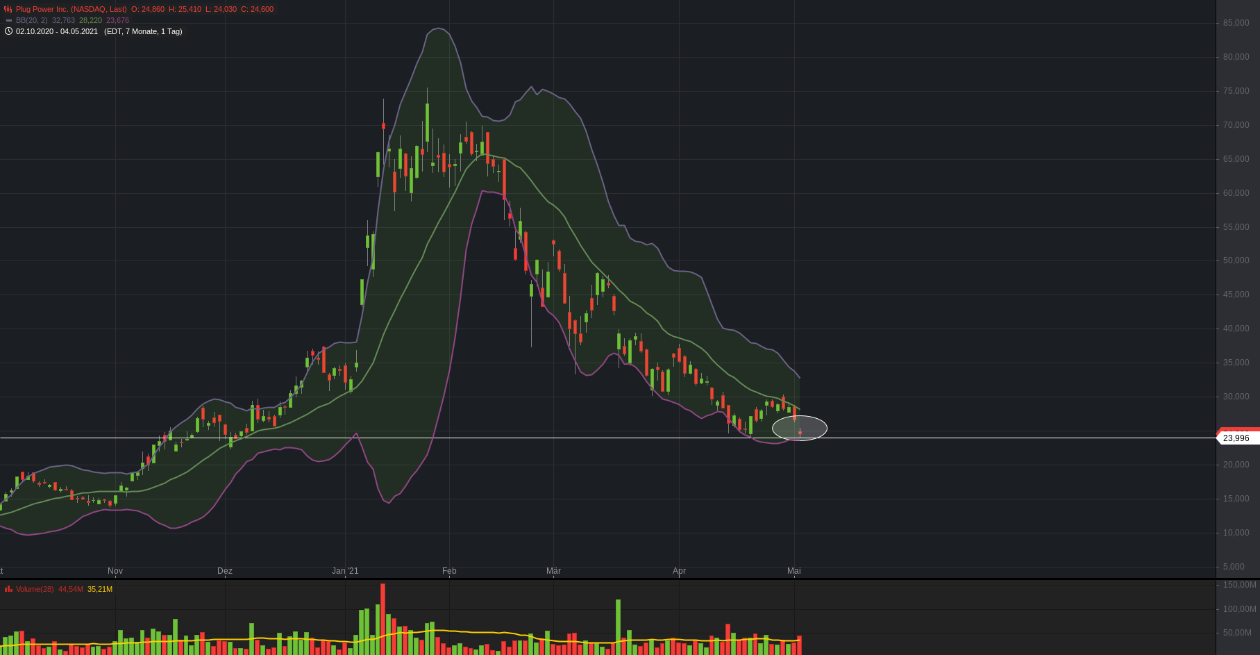 Plug Power erhöht jetzt die Investitionen in grünen Wasserstoff, da weltweit immer mehr Unternehmen das Gas als saubere Stromquelle betrachten. Ziel ist es, bis 2025 nur grünen Wasserstoff zu liefern. Derzeit sind etwa 30% grüner Wasserstoff und der Rest wird als "blau" oder "grau" eingestuft, der aus Kohlenwasserstoffen gewonnen wird, die in der Verarbeitungsphase Kohlendioxid emittieren.