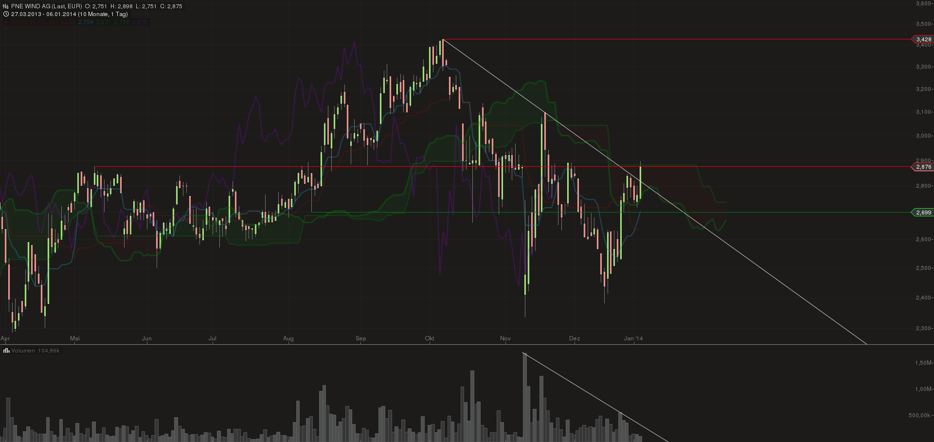 Bei einem aktuellen Konsens-KGV von 6,0 für 2014 scheinen die künftigen Potenziale von PNE Wind in der Aktie noch nicht adäquat eingepreist. Es könnte zwar noch etwas dauern, bis die angekündigte Förderkürzung im deutschen Onshoregeschäft nachhaltig verdaut ist. Von dem Dezembertief ausgehend dürfte sich der Blick der Aktionäre trotzdem nach oben richten.