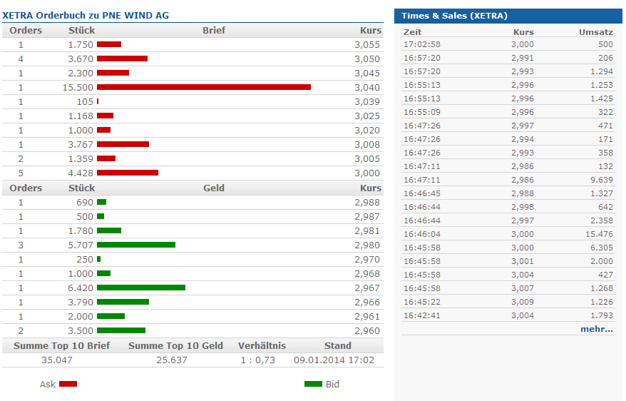 Die 33.800 Stück im Geld sind quasi KAUF-Gebote. Sie drücken also nicht den Kurs, sondern stützen ihn, so dass er nicht ohne weiteres unter 3 Euro fällt (wo dann vermutlich wieder einige Stop Loss Orders stehen). Insofern profitieren wir als Aktionäre davon. Also, nicht immer gleich eine Intrige gegen den Kleinaktionär vermuten. ;)