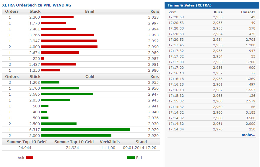 Ansonsten würde ich sagen: nur Geduld. Nach derzeitigen Stand wird der Newsflow für PNE in nächster Zeit gut (Prognose für 2013 sollte geschafft sein, Dividendenvorschlag, vielleicht sogar weitere gute Nachrichten von Projekten, Milestone-Zahlungen oder was weiß ich, ...). Von daher sehe ich viele potentielle Kurstreiber, aber kaum Potential für große Rücksetzer.