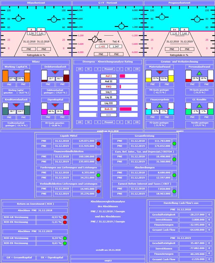 Negativ: Eigenkapitalquote um 18% gesunken, verursacht durch die erstmalige Aufnahme von Leasingverbindlichkeiten (ca. 40 Mil. €) und Ausweitung von Darlehensverbindlichkeiten (ca. 50 Mil. €). Die Rohertrag II-Quote (insbesondere Materialaufwand) hat erheblich nachgelassen durch die Veräußerung von schlüsselfertigen Projekten.