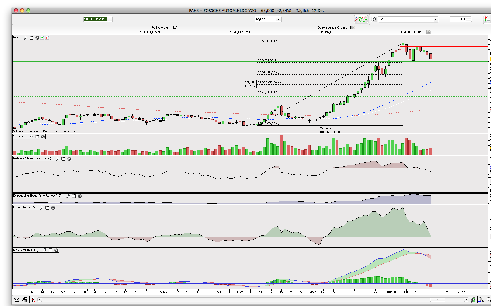 fürchte aber, dass es unumgänglich ist. Ich habe ehrlich gesagt eine große Menge verkauft im Bereich 64-65, war danach sogar kurz short bei Porsche und auch hier mit ein paar Kröten im Plus. Jetzt bin ich wieder verstärkt long, eigentlich hoffe ich, dass wir uns jetzt im Bereich bei 62 einpendeln und es nicht unbedingt wieder die 60 sein muss.
