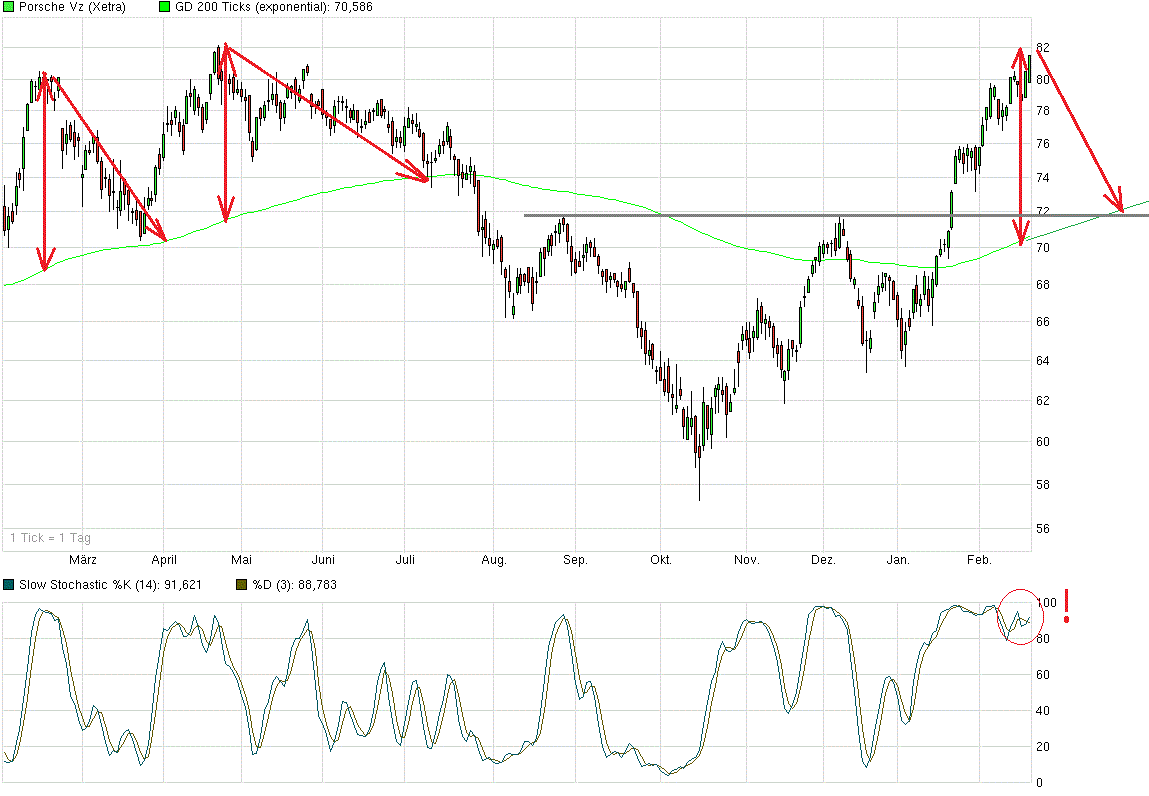 Da auf eine Korrektur zurück auf 72,- Euro ein neuer Angriff auf die 82,- Euro folgen dürfte, wäre das eine erfolgversprechende Grundlage für einen Turbo.