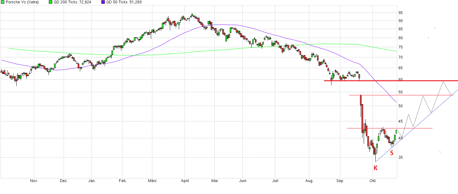 Ansonsten ist man der Entwicklung der VW-Stammaktien ausgeliefert. Wie die Stammaktien inmitten eines Unternehmens, das vom Staat und der Gewerkschaft in Geiselhaft genommen und von einem anachronistischen VW-Gesetz abgeschirmt wird, prosperieren sollen, das verrate mir mal einer.