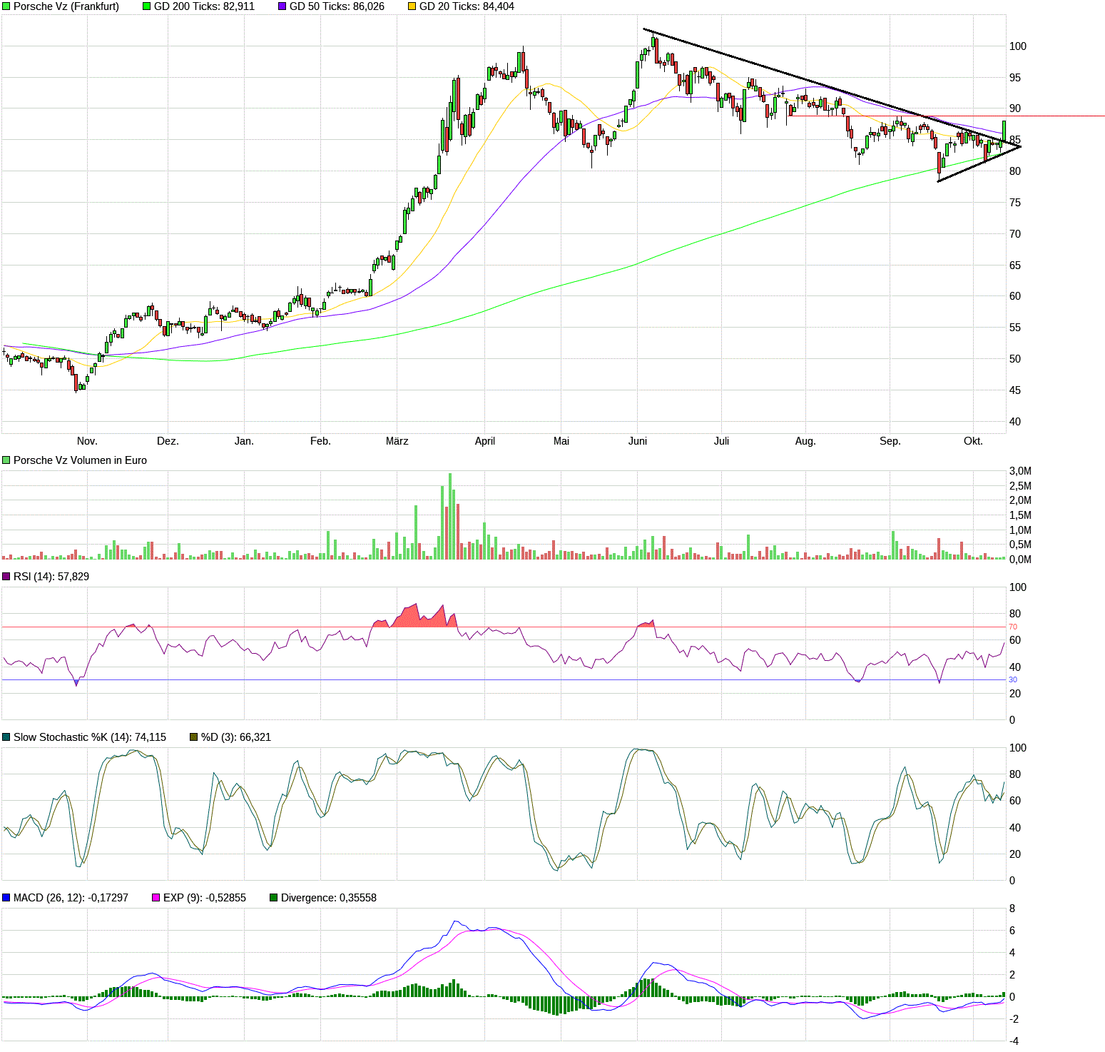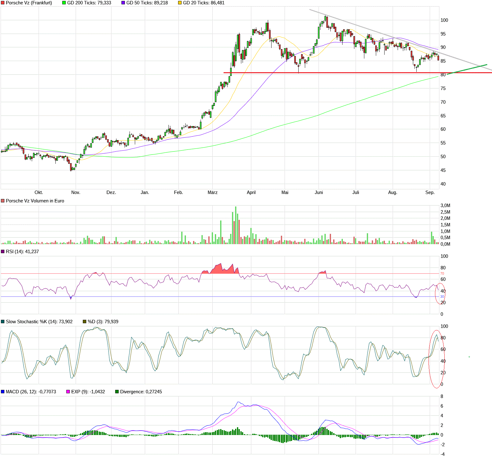 Ein kurzfristiges Unterschreiten ist jedenfalls keine Katastrophe. Man schaue auf den Chart im September 2020: auch damals wurde die 200 TL nach unten durchbrochen. Folge: nach einer Seitwärtsbewegung startete der Kurs im November eine Rallye, die ihn von 45,- auf 100,- Euro hievte.