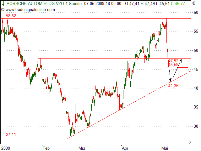 Bei 40 Euro ist bei Porsche eine gute Unterstützung, da sollte es auf jeden Fall eine technische Reaktion nach oben geben.
