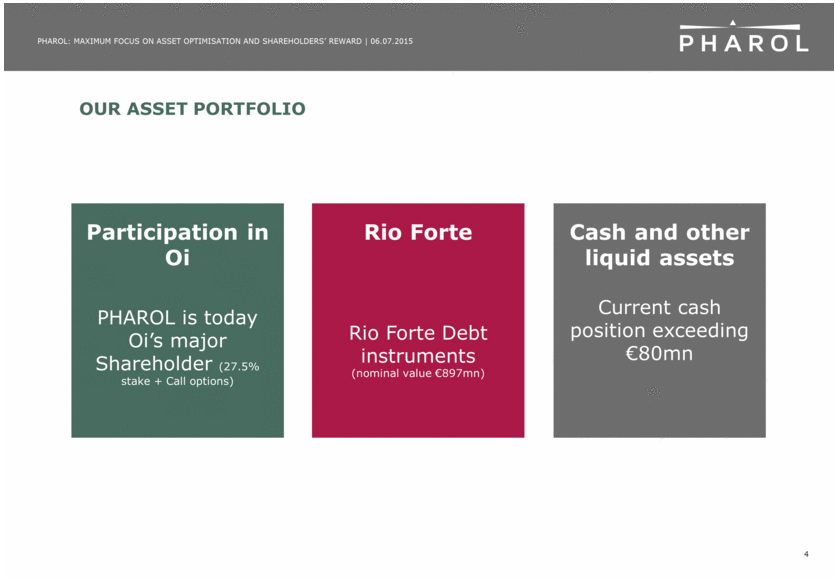 Gut, dann wären da noch die zuletzt gut 80 Mio Euro Cash von Pharol, was ca. 10 Cent pro Aktie entspricht .....die könnten dann natürlich ausgezahlt werden .....