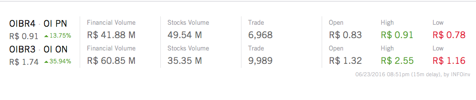 Die so veränderte Oi S.A. kann also die Investoren, auch die b i s l a n g genannt wurden, interessieren. Dann ginge es doch nur darum, möglichst viele Aktien zu erwerben - und die sind börsentechnisch stark begrenzt, zumal hier schon einmal mit 200 MIO Stücken eingegriffen wurde (...leicht weniger als die Hälfte der verfügbaren freien Stücke am Markt).