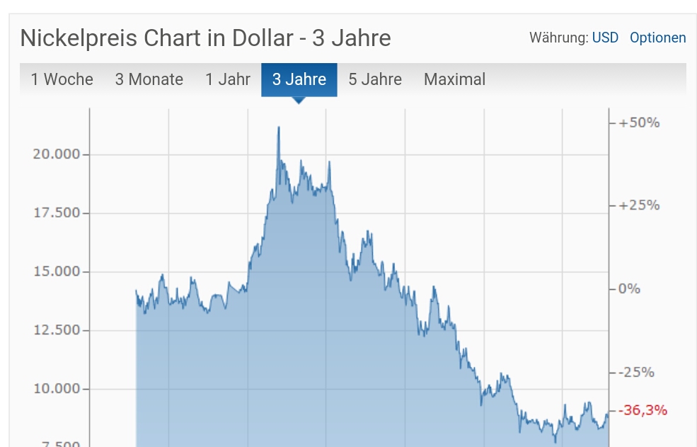 Nun bin ich auch mit an Bord. Was mich hier überzeugt, ist, dass sie zwei Standbeine haben : Nickel und Lithium. Der Lithiumpreis ist ja schon gestiegen. Was ich aber viel besser finde ist, dass der Nickelpreis sehr niedrig ist. Das bedeutet, fass viel Potential nach oben da ist. Das ist immer dasselbe mit den Rohstoffaktien: sind die Rohstoffe billig, sind die entsprechenden Aktien billig. Steigen die Rohstoffe, steigen die Aktien überproportional. Und die Hebel sind am größten, wenn man frühzeitig einsteigt.....sozusagen so früh einsteigt, bevor der Trend überhaupt beginnt. Bei Uranium Energy hab ich das so gehalten und bei Lithium auch (Galaxy Resouces) - und ich bin bis jetzt sehr gut damit gefahren)