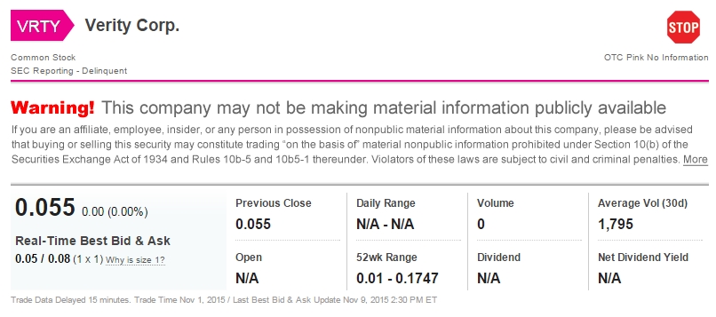 Denk mal nur an die Aussage :Spader geht mit uns !!!Wenn die Verity (corp)Farms durch Mr.Sneller geregelt wird,wie es zur Zeit den Anschein hat,bin ich guter Dinge.Eins ist aber auch klar,Sollte im November keine SEC Einreichung wie 8-K oder 10-K kommen ist hier Feierabend.Ich bin aber immer noch nach der langen Zeit guter Dinge. Gruß Albert68