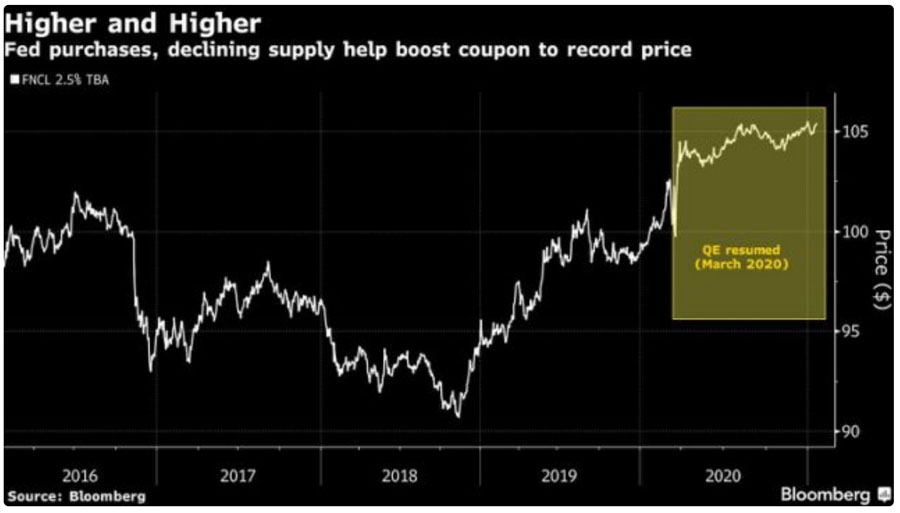 Riskant sind die MBS-Aufkäufe für die Fed eh nicht. F&F-MBS sind wesentlich solider als Junkbonds von Wackelfirmen, die die Fed ebenfalls massenhaft aufkauft. Vor 2008 galten F&F-MBS als ähnlich sicher wie US-Staatsanleihen und hatten auch AAA-Rating. Zudem bringen die 30-jährigern MBS zurzeit 2,5 % Zinsen.
