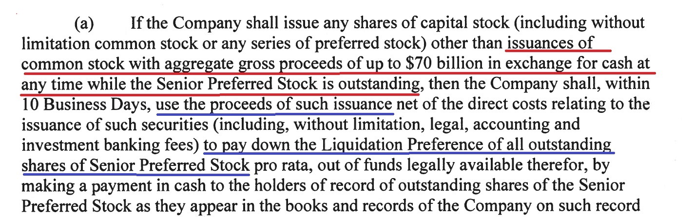 Da Mnuchin somit des (politischen) "Gewinns" beraubt wurde, eine endgültige Entlassung aus der Zwangsverwaltung genehmigen zu können, gab es für ihn keinen Grund, den Net-Value-Sweep und die Liquidationspräferenz aufzugeben, so dass seine und Direktor Calabrias beste Alternative die Briefvereinbarung vom 14. Januar war, mit der er das Problem an die Biden-Administration weitergab....