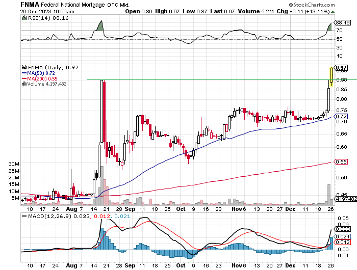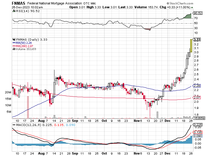 Um die Täuschung auf die Spitze zu treiben, werden die neuen Aktien dann voraussichtlich auch wieder mit den alten Tickern FNM und FMC gelistet und so gepreist, dass sie in den Preisregionen der frühen Nuller Jahre notieren. Im Langzeitchart sieht dann "alles aus wie immer", nur dass er eben kurioserweise erst in 2024 beginnt (obwohl Fannie seit 1938 besteht). 1934 kräht da kein Hahn mehr nach (siehe GM oder AIG).