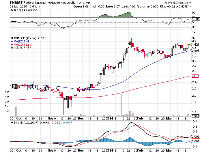 FnF sind faktisch zu Staatsfirmen geworden nach 2008, und sie finanzieren immer mehr Staatsprogramme für Bedürftige - als eine Art Schatten-Sozialhaushalt der Biden-Regierung. FnF rangieren nur deshalb noch pro forma als "Privatfirmen", damit die MBS nicht der US-Staatsverschuldung zugerechnet werden müssen. Die Takings-Klage wurde dennoch von den Gerichten abgewatscht. Angeblich gab es keine Verstaatlichung.