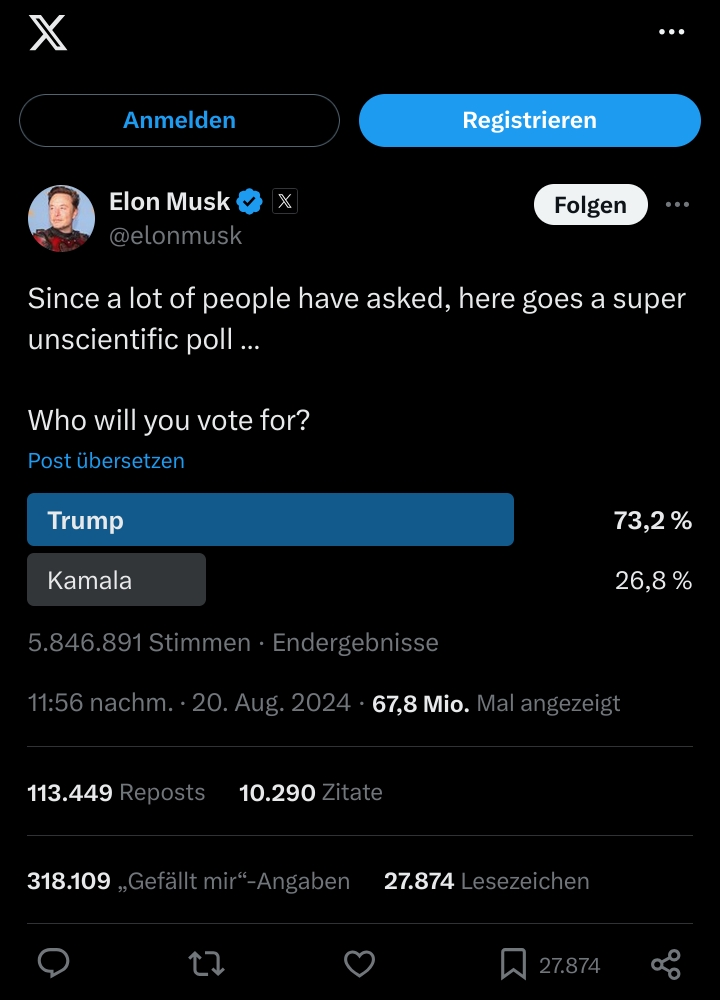 Aktuell steht das Umfrageparameter still (15.08.2024), obwohl sonst täglich mehrere Umfragen eingestellt werden. Es scheint Probleme zu geben.