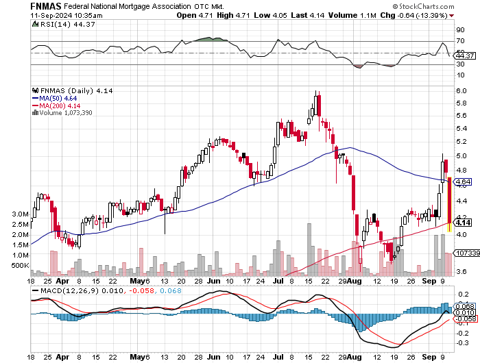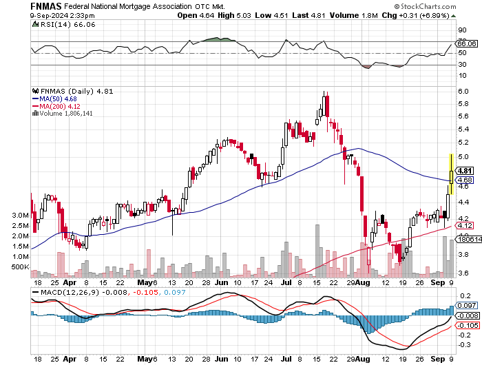 Die Wette auf Fanny und Co. besteht tatsächlich darin, dass die Republikaner die Regierung ab 2025 wieder stellen. FF hat schon recht mit dem Wahlausgang am 05.11. 2024, es kann schiefgehen. Es besteht aber eine Chance, dass sich der eingesetzte Betrag bei diesen Beteiligungen nicht nur verdoppelt, sondern verfünffacht (auf Nennwert bei den Vorzügen). Bei einer solchen Chance bin ich dabei. Auch der 3. Kandidat scheint heute aufzugeben und wird wahrscheinlich eine Wahlempfehlung für Trump abgeben.