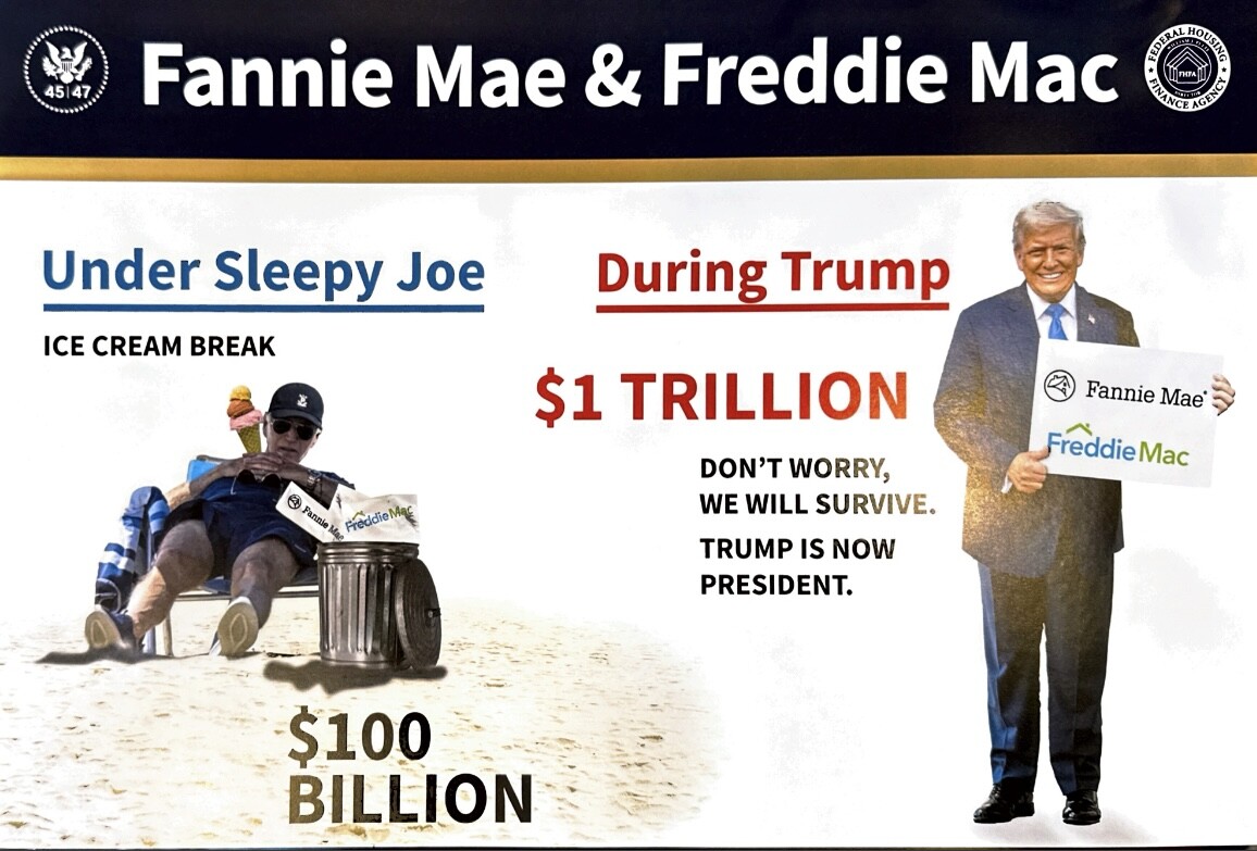 3. Ich habe kein Vertrauen, dass die Freilassung überhaupt noch jemals erfolgt. Trump hatte 4 Jahre Zeit und es geschah wenig. Und nun soll es bei seiner Wiederwahl was werden? Die Großbanken dürften sauer sein auf Trump, wenn er die Billigkonkurrenz von der FHFA-Leine lässt.