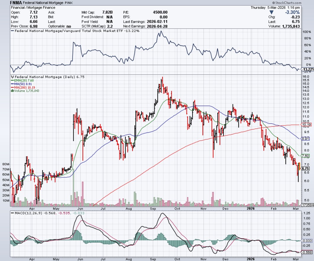 Kursentwicklung & Volatilität: FNMAT und ähnliche Fannie-Mae-Vorzugsaktien haben seit dem Wahlsieg Ende 2024 stark zugelegt, erlebten jedoch Anfang 2026 Rücksetzer, da Unklarheit darüber herrscht, wie schnell eine Restrukturierung umgesetzt wird.