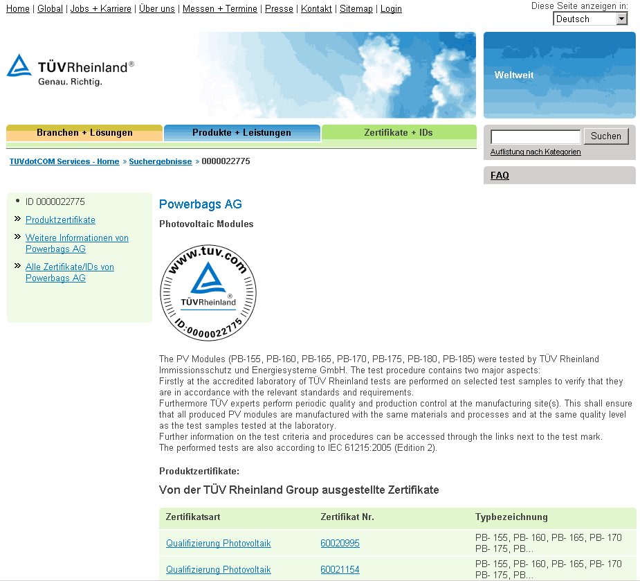 | 28 | 856 | Powerbags der Solarmodule Produzent | Knappschaftskass. | Vola | 29.05.10 14:34 | |
