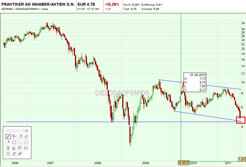Donnerwetter, die Dame hat ja tatsächlich Ahnung (trotz ihrer Haarfarbe ;-)). Sagt da einfach am 17.06. was von 4,95 Euro voraus - und genauso kommt's. Und sogar noch schlimmer. Und das auch noch binnen zweier Wochen.