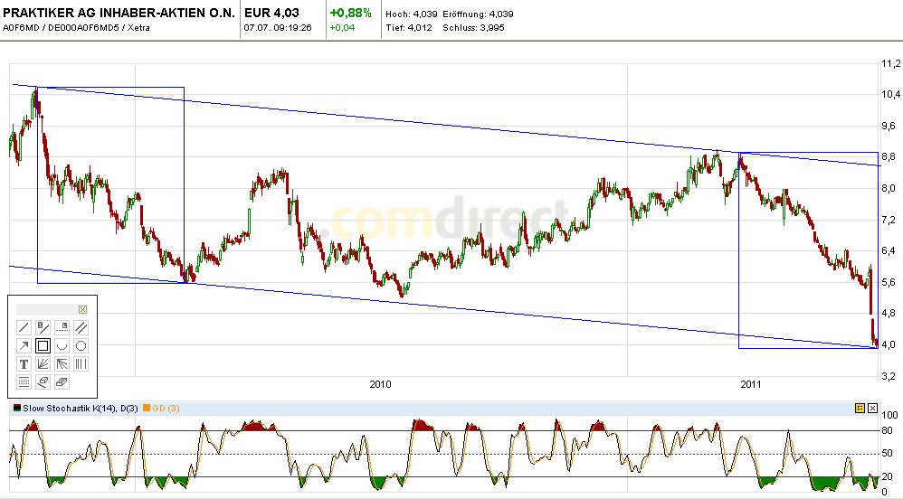 Fällt die Praktiker Aktie noch auf 3,- Euro?Quelle: Investorsinside