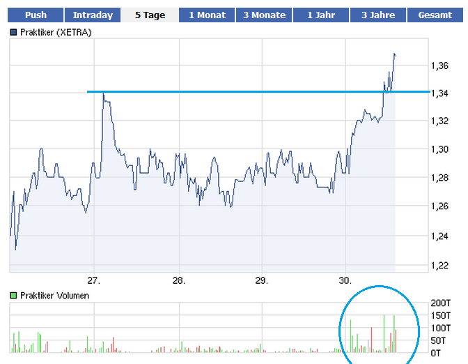 Der Gesamtmarkt ist im Minus und Praktiker hält sich heute und auch die letzten Tage im VERGLEICH zum Gesamtmarkt recht gut.