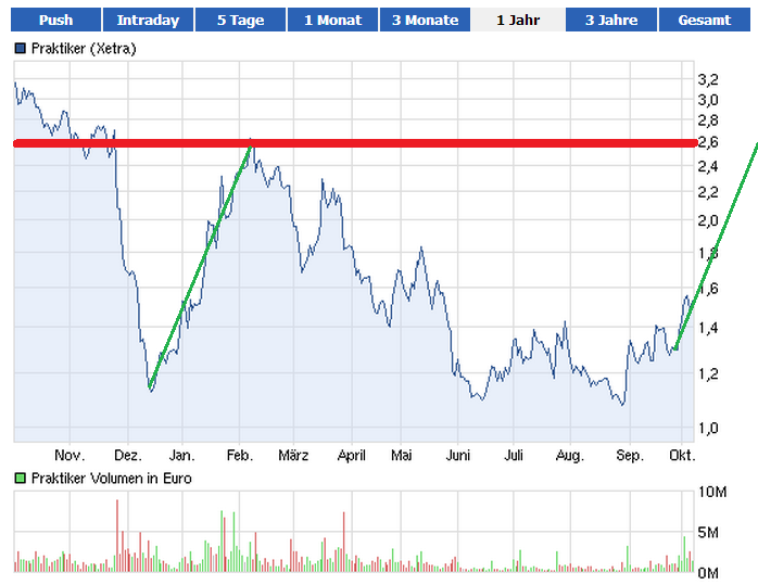 Am Freitag stiegen die Aktien um 2,6 Prozent auf 1,53 Euro. Praktiker dürfte mit der Kapitalspritze sein Grundkapital in etwa verdoppeln. Zeichnen Whitesmith und Donau Invest Anteilsscheine für je 20 Millionen Euro, kämen sie zusammen auf rund ein Drittel der Anteile.