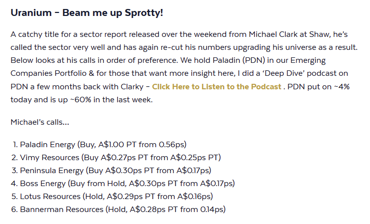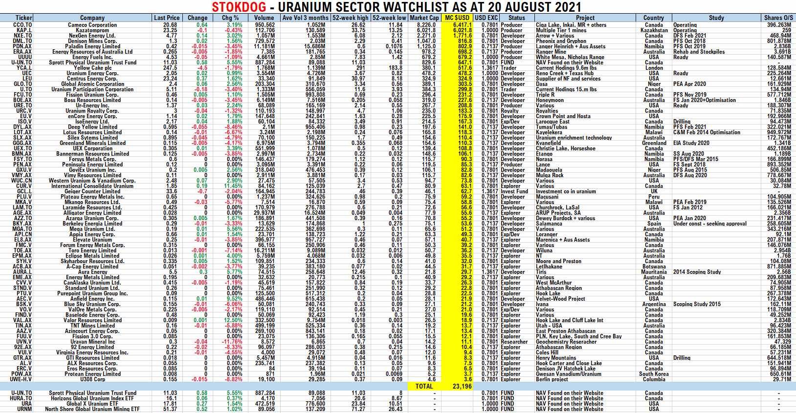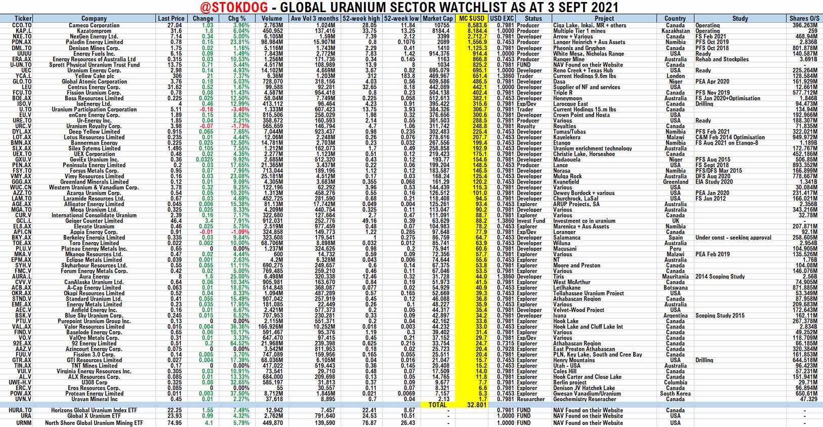 Sept 3rd Update: Spot ask at $39.25. Sprott keeps doing their thing. SPUT stacked 1.4 MILLION pounds of uranium today. That's the annual supply of seven average nuclear power plants put into storage.