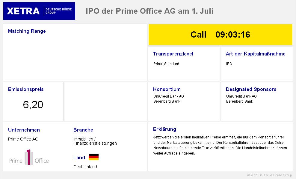Die Vorstände der Prime Office REIT-AG und der OCM German Real Estate Holding AG haben Gespräche über eine Verschmelzung der Gesellschaften mit dem Ziel eines börsennotierten gemeinsamen Unternehmens aufgenommen und beabsichtigen, bei positivem Verlauf der Gespräche, weitere für eine Verschmelzung erforderliche Schritte vorzunehmen, einschließlich der Ermittlung einer Verschmelzungswertrelation und der Bestellung eines Verschmelzungsprüfers.