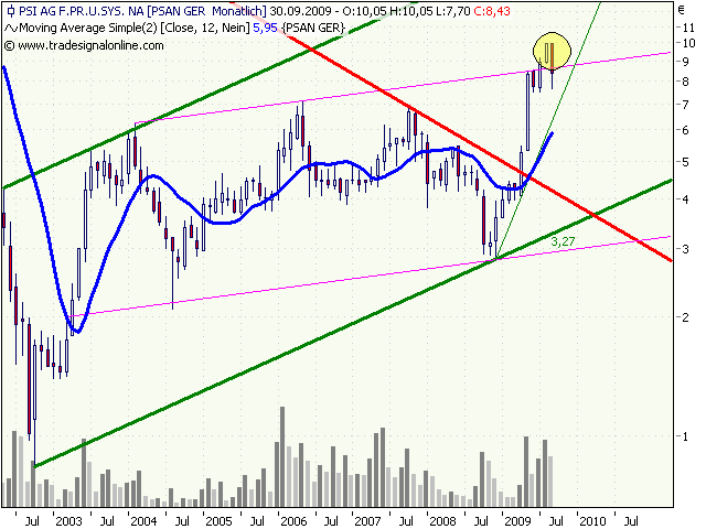 2009 waren nur der Mai und der August wesentlich umsatzstärker. Über 5,14 Mio. Euro Turnover im September bringen PSI weiter in Richtung TecDAX. Innerhalb der nächsten sechs Monate sehe ich für die Market Cap großes Potential. Werde nächste Woche die Prognosen für das Q3 und Q4 bringen.