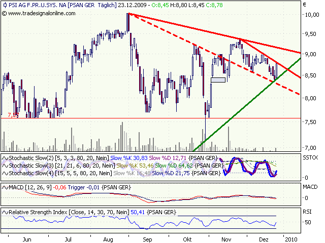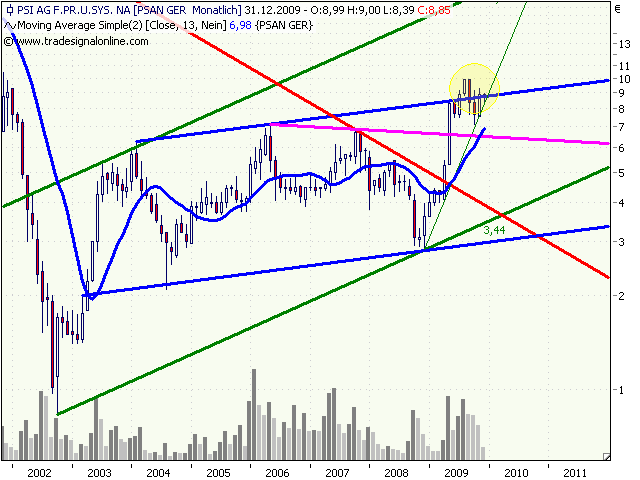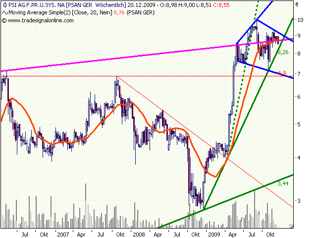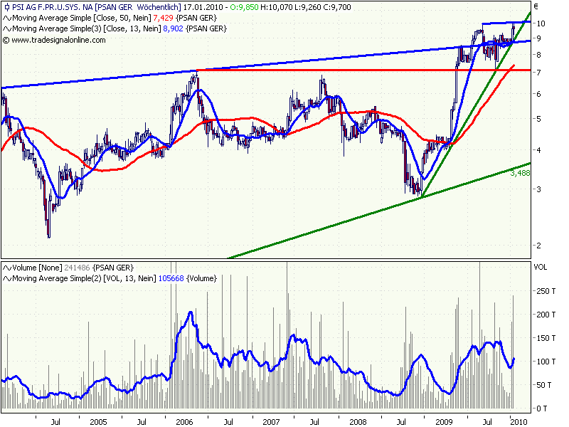 Die Kursentwicklung von PSI ist für mich schon etwas überraschend. Heftige Umsätze mit neuen Höchstständen und etwas abflauende Umsätze mit leichten Rücksetzern.