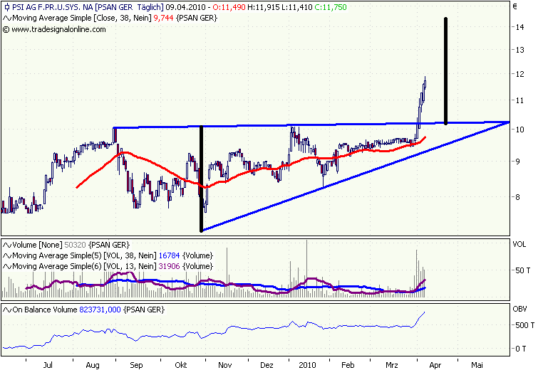 Von den ersten fünf Handelstagen des Aprils ( rund 4,2 Mio. Euro ) hochgerechnet, bringt PSI einen Turnover von über 200 Millionen Euro p.a. auf die Waage. Das ist TecDAX-Niveau.