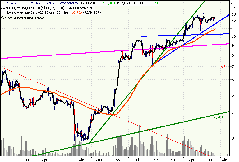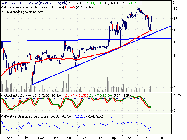 Für Trader läuft es mit PSI bei hypernervösen Märkten und großer Volatilität schlecht. Die Aktie ist extrem stabil. Es stehen offensichtlich Investoren auf der Matte, die kalkuliert und rational einsteigen. Der Mai bringt für PSI, ohne extreme Handelsvolumina, den drittstärksten Börsenumsatz seit mehreren Jahren. Der "Kleinkirchen-Mai `09" ist schon übertroffen worden. Die Umsätze kommen anscheinend auch ohne Übernahmeszenario zustande.