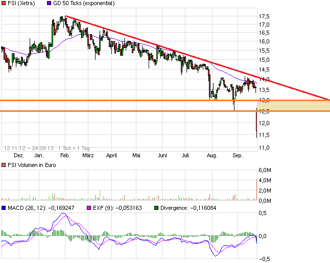 Wobei ich ja skeptisch bin, ob das dann unbedingt günstige Kaufkurse sind, denn selbst bei 10-11 € hätte PSI für das Jahr 2013 noch ein KGV von 40-50 und fürs kommende Jahr von knapp 20.