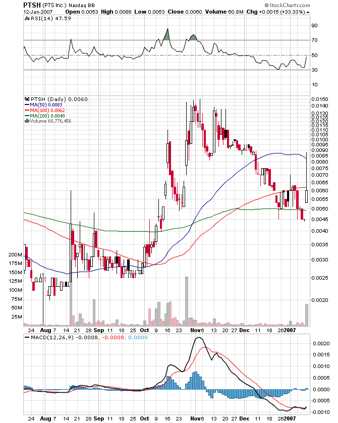 LAS VEGAS--(BUSINESS WIRE)--PTS, Inc. (OTCBB: PTSH - News) wishes to all its many shareholders a very happy and prosperous New Year. Furthermore, PTS, Inc. reports that it enjoyed much success in 2006, and is looking forward to an even more successful and exciting 2007.