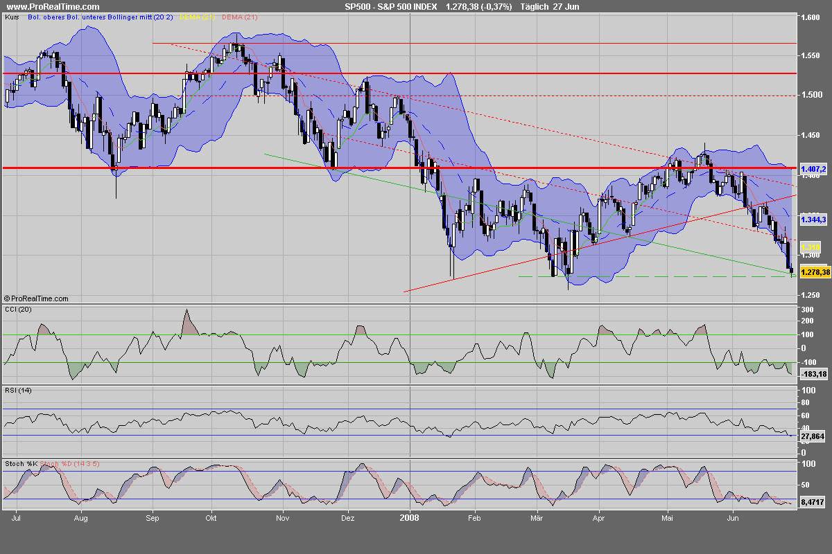 Am Freitag dem 24.10.08 wurde die Marke gleich 2 Mal getestet. Noch prallte der Test ab, aber wie lange hält die Unterstützung noch? Es gibt sicherlich genug Institutionelle die den DAX gerne auf 3000 oder gar 2000 sehen möchten.