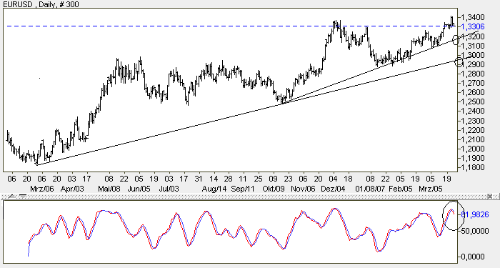 Die Teilindex der Bank-Titel gab im Zuge der allgemeinen Ernüchterung 0,8% ab. Die schwelende Hypothekenkrise kam heute offenbar wieder stärker ins Bewusstsein. Härter traf es die Chip-Branche, die 1,3% verlor und die Computer-Hardware, die 1,7% abgab. Am schlimmsten erwischte es die Airlines, die - wegen scharf anziehender Energiepreise - um 2,8% absackten.