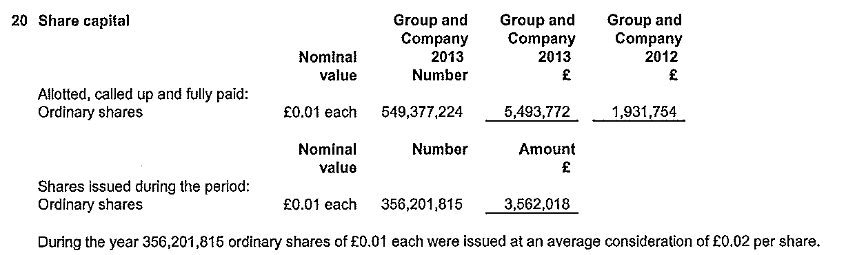 Das heisst per 31.3.2013 waren rund 905 Mio Aktien ausstehend, d.h. eine gewaltige Mehrdifferenz gegenüber den Aktien welche an der GXG mit 583 Mio Aktien gemeldet wurden.