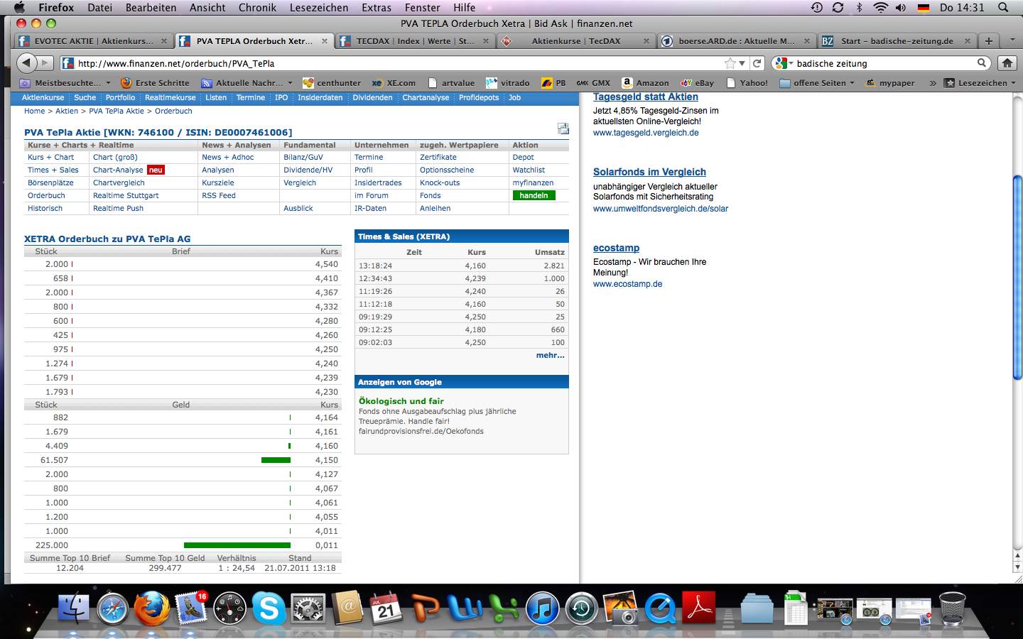 Börsen: Regulierter Markt/Prime Standard: Frankfurt, Freiverkehr: Berlin,