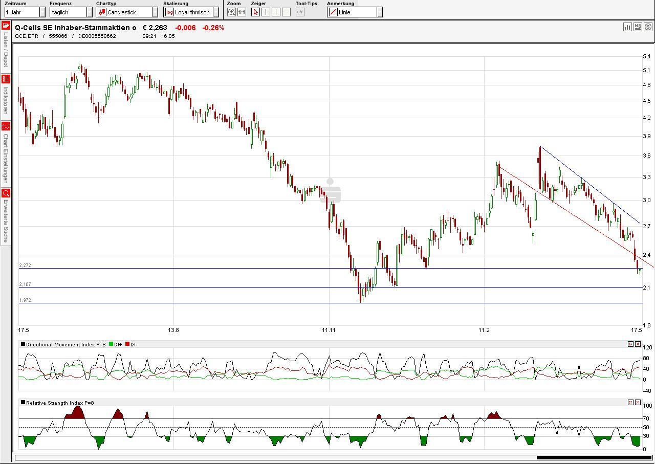 Da der Kurs schon sehr lange fällt (s.o.), gehe ich davon aus, dass der Tiefstand von 1,97 anzupeilen ist. Aufgrund der Umorientierung der Politik: weg von Atom, hin zu erneuerbarer Energie, denke ich wird auch Q-Cells Auftrieb bekommen. Doch das wird noch dauern, da es andere Unternehmen geben wird, die vorher von diesem Umschwung profitieren werden.