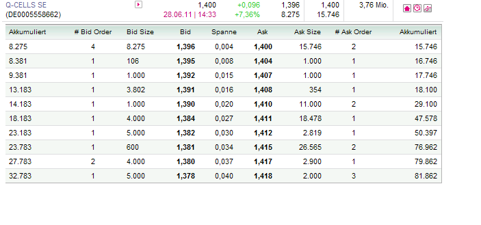 Die Experten von 4investors erinnern daran, dass der Aktienkurs von Q-Cells unter die Unterstützungsmarke bei 1,59 Euro gesunken ist, was ein weiteres Verkaufssignal erzeugt hat. Das untere Ende des stark fallenden Bollinger-Bandes dient als Orientierung. Da der Schlusskurs mit 1,30 Euro beinahe dem Tagestief von 1,29 Euro entspricht, bleibt die bearishe Gesamtlage in der Charttechnik intakt.